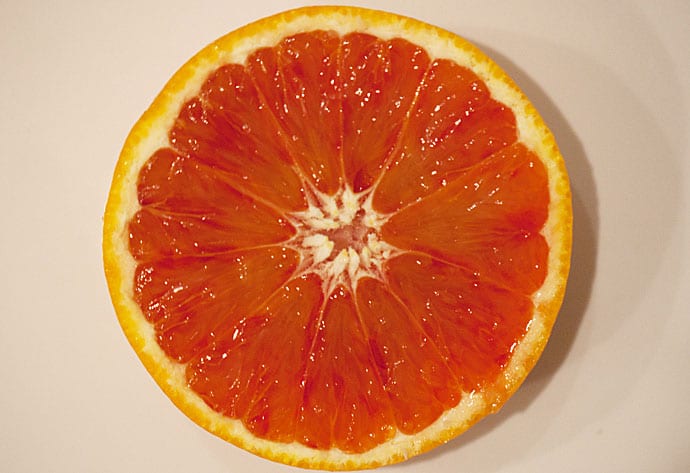 Blodappelsinerne er fantastiske lige nu. Det er højsæson for blodappelsiner og jeg er vild med juicen fra friskt pressede blodappelsiner. Det er det pureste rødguld. Smukt, sødt og aromatisk.