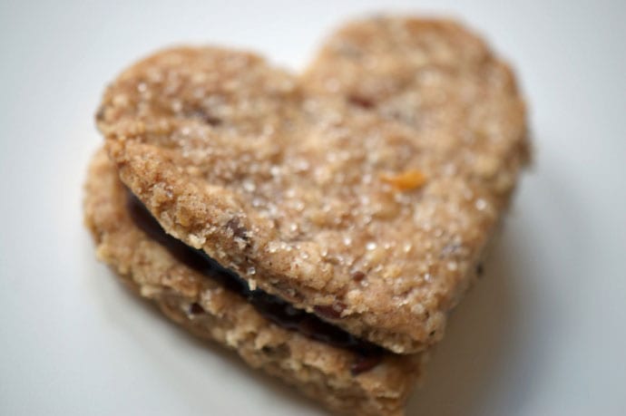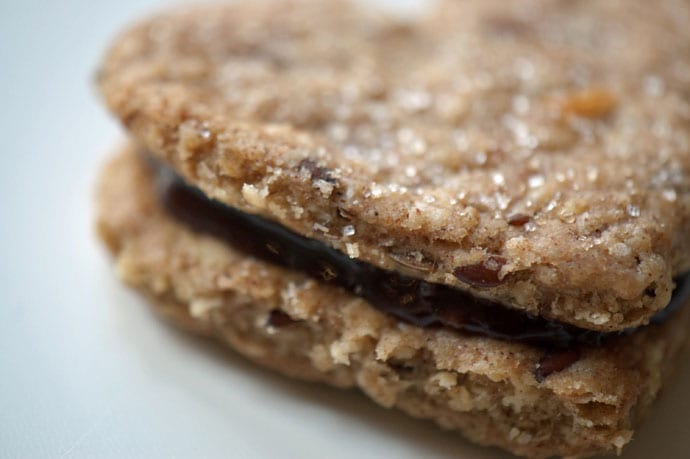 Og dagens billeder var en oplagt mulighed for at kombinere gårdagens hjemmelavede nutella med et par nybagte hjertekiks, lavet på opskriften med havregrynskiks, blot tilsat lidt hørfrø og drysset med en smule kanelsukker. De blev hilst hjerteligt velkommen hos krudtuglerne :)
