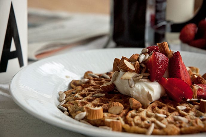 Er det mon morgenmadsvafler med banan, der er på billedet?