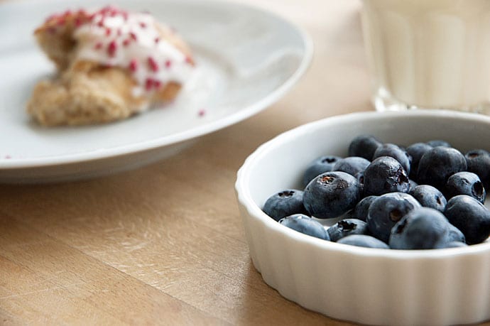 Kageboller blev de døbt af Julie og den søde overraskelse faldt i ret god jord :) Smagte også helt fantastisk med et glas iskoldt mælk og blåbær til.