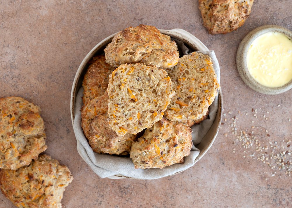 Nemme kernestykker med femkornblanding og gulerødder. Resultatet er lækre saftige boller, som egner sig godt til både morgenbordet og madpakkerne.