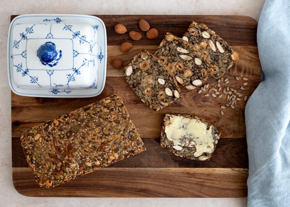 Klassisk stenalderbrød som er smækfyldt med nødder, kerner, frø bagt med æg, olie og salt. Intet andet.